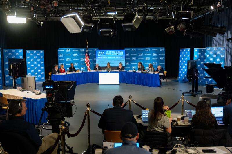 The CDC Advisory Committee on Immunization Practices meets in Atlanta on Friday, Dec. 5, 2025 to consider changes in hepatitis B vaccine recommendations for infants. (AP Photo/Ben Gray)