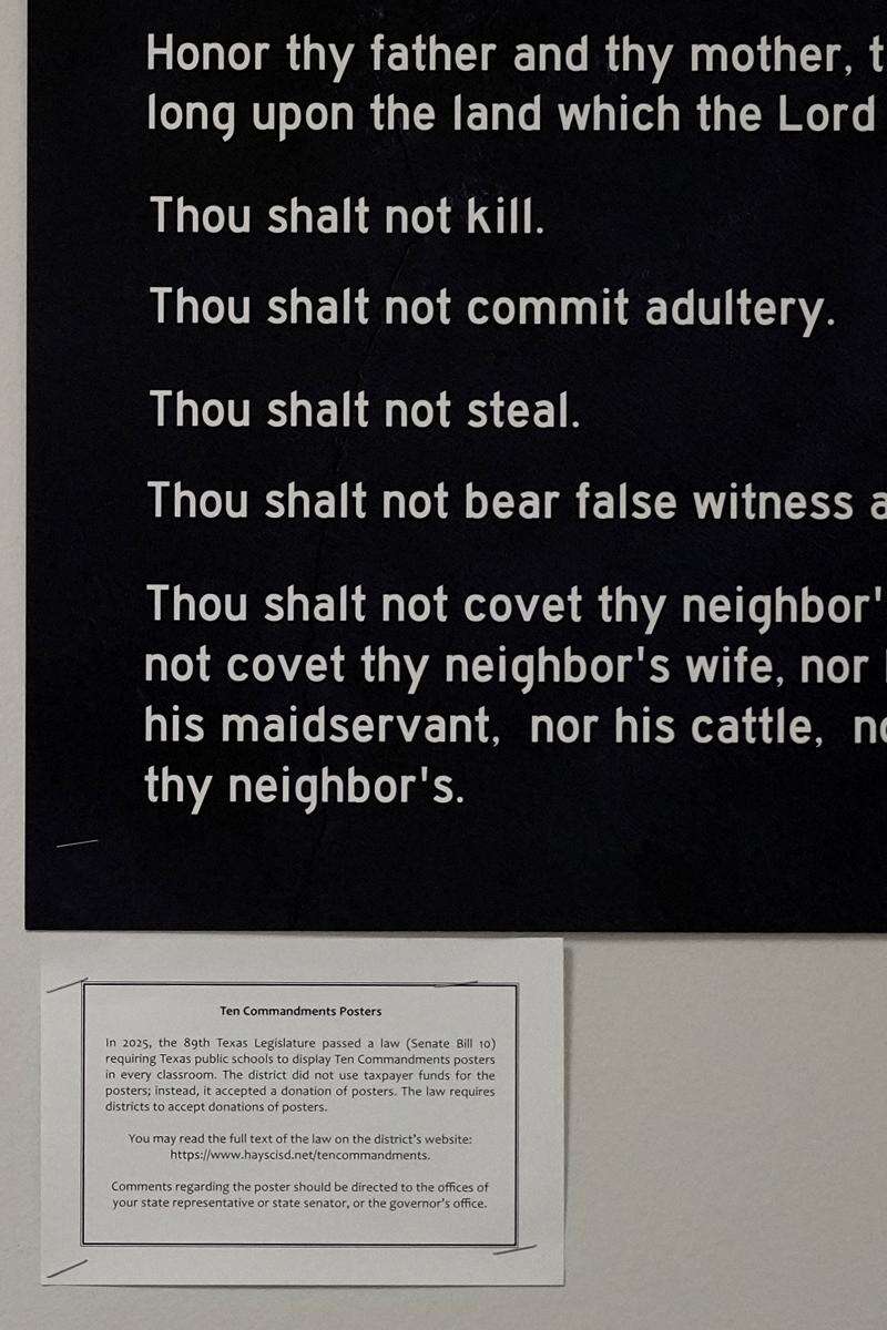 Texas' law, signed by Republican Gov. Greg Abbott, requires the Ten Commandments to be posted in every public school classroom and took effect in September. With the law only requiring districts to hang them if they are donated, conservative groups and individuals began dropping off boxes of posters at campuses across the state as the school year began.