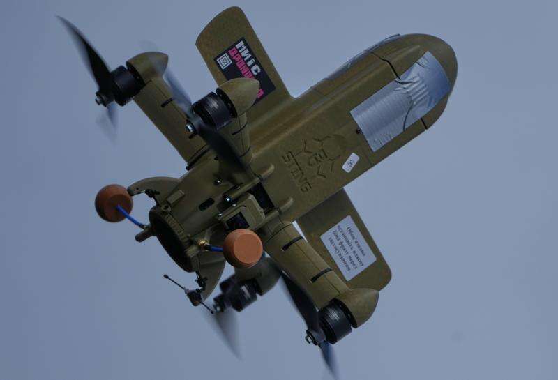 FILE - A Sting interceptor drone flies during drills at the Yatagan School for Unmanned Aerial Systems in the Kyiv region, Ukraine, on March 19, 2026. (AP Photo/Efrem Lukatsky, File)